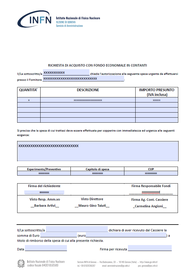 N.B.: si prega di inviare l’invoice entro il mese di competenza del pagamento a carmen.angioni@ge.infn.it al fine di adempiere alle dovute dichiarazioni fiscali.